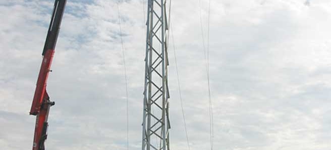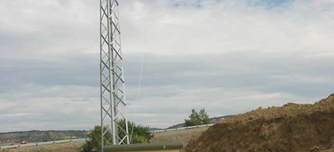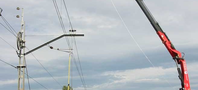 Tirada del cable, sobre catenaria del ferrocarril, para dar servicio eléctrico a E.D.A.R.